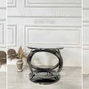 Meja Tamu Salur Marble & Stainless – 2 Ukuran (D80 & D60)