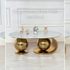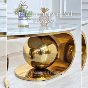 Meja Tamu Twin Ball Eksklusif – Stainless Gold & Top Marmer
