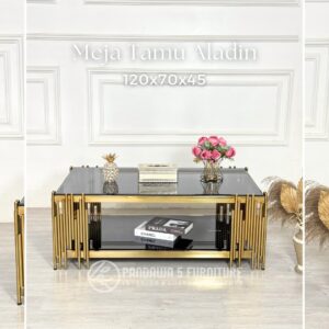 Meja Tamu Aladin – Sentuhan Mewah dengan Stainless Gold & Kaca Elegan