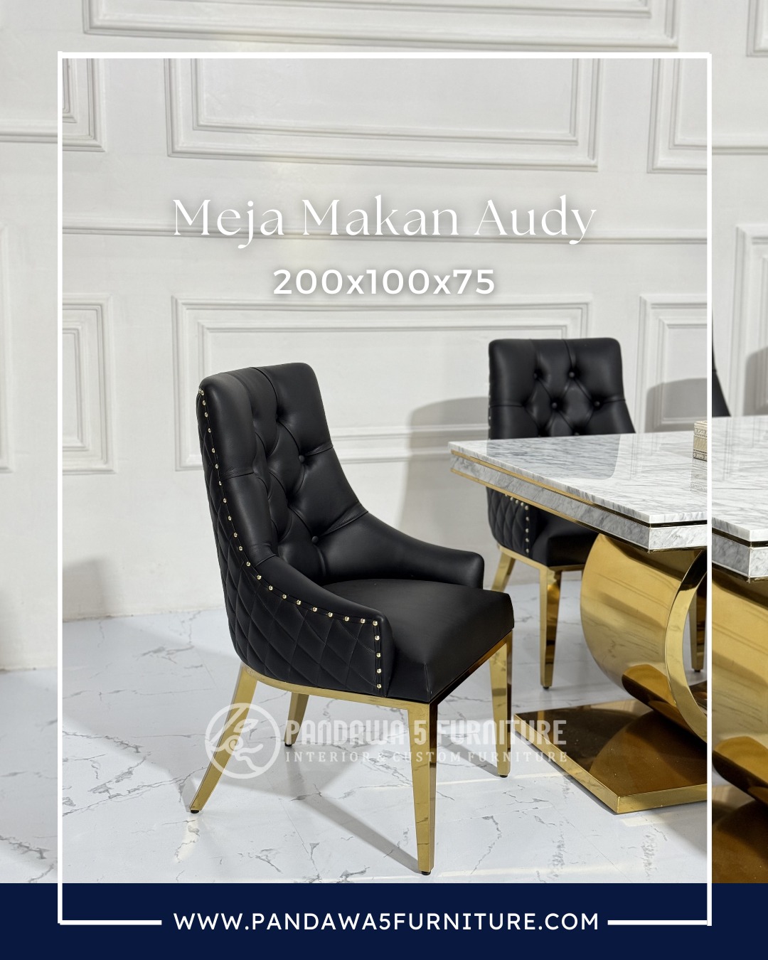 Hadirkan nuansa makan yang lebih mewah dengan Meja Makan Audy yang memadukan top marmer elegan dengan kaki stainless steel gold berdesain modern. Cocok untuk ruang makan bergaya luxury, minimalis modern, hingga interior klasik.