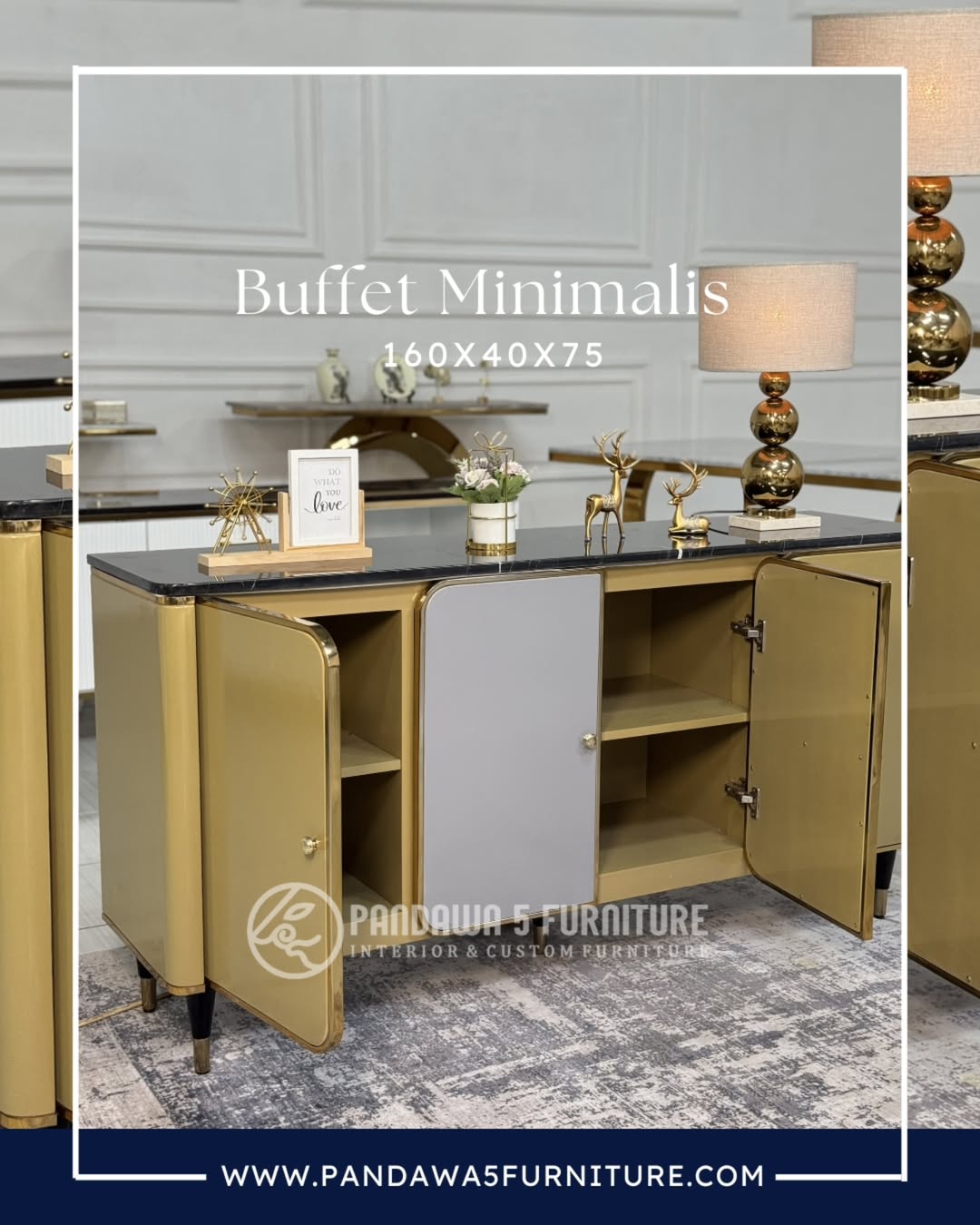 Buffet stainless minimalis custom ini merupakan pilihan sempurna bagi Anda yang menginginkan furnitur elegan, fungsional, dan eksklusif. Dibuat dengan perpaduan material stainless steel, MDF berkualitas tinggi, dan marmer pilihan, produk ini menghadirkan kesan modern sekaligus mewah di setiap ruangan.