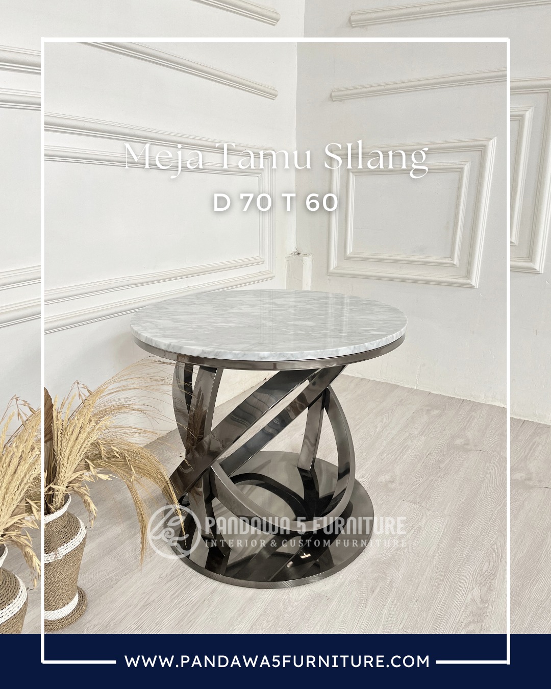 Cross Base Coffee Table Top Marble | Meja Tamu Silang Stainless – Elegan & Mewah