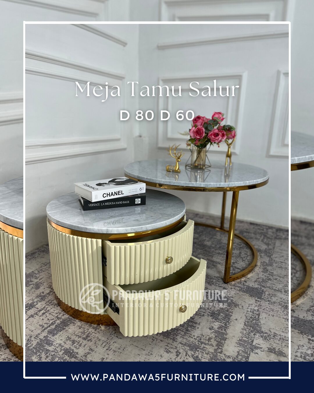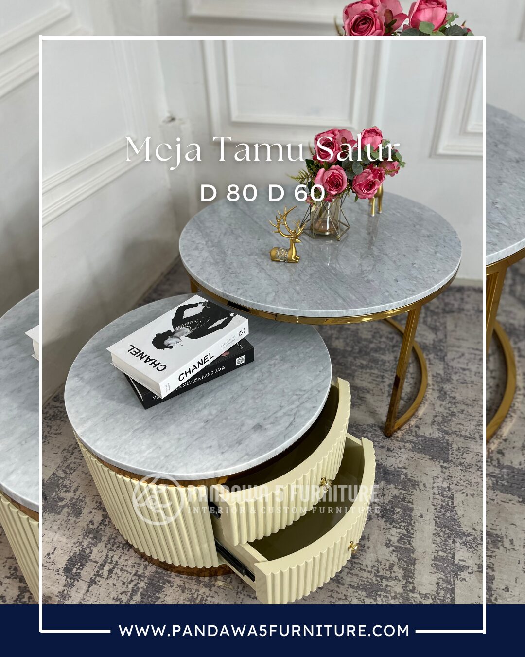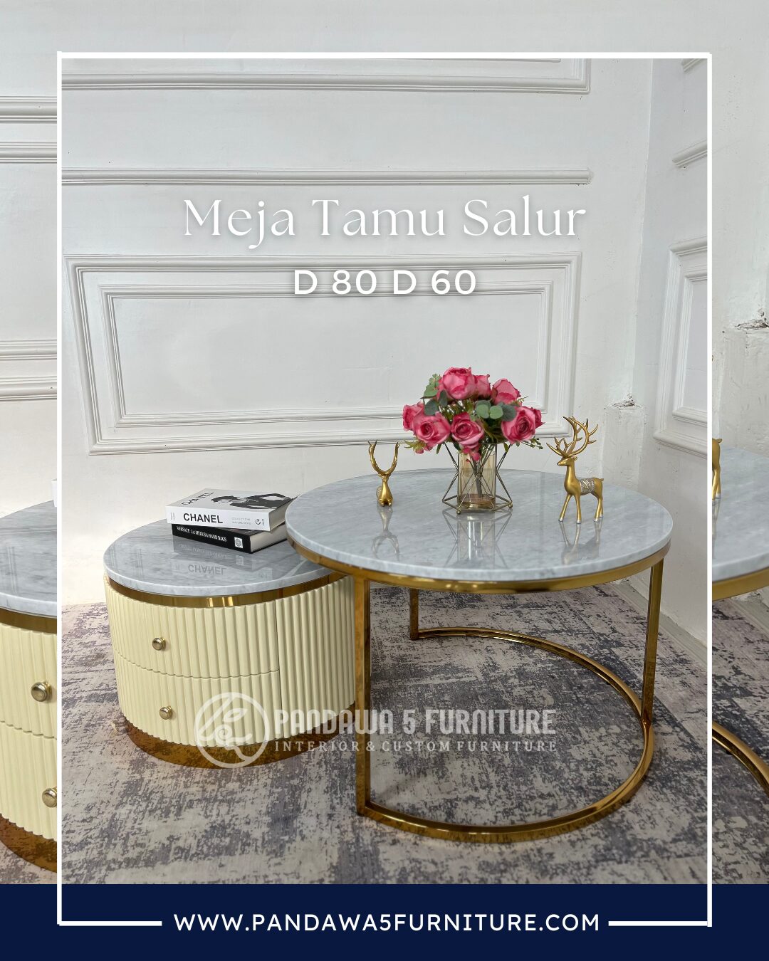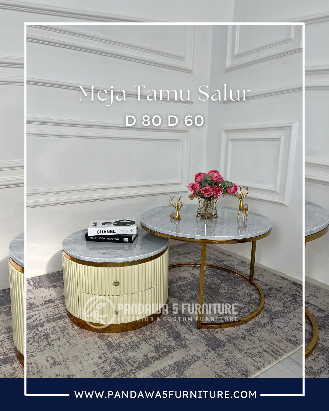Meja Tamu Salur Marble & Stainless – 2 Ukuran (D80 & D60)
