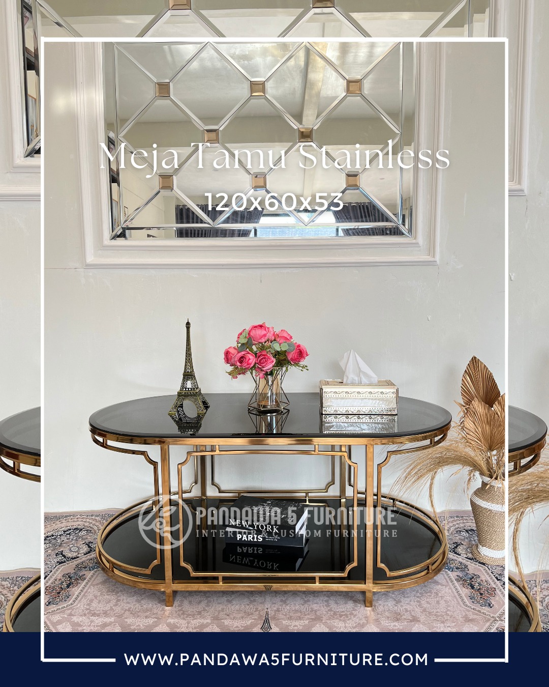 Meja Tamu Stainless Gold 120x60x53 – Sentuhan Mewah untuk Ruang Tamu Modern