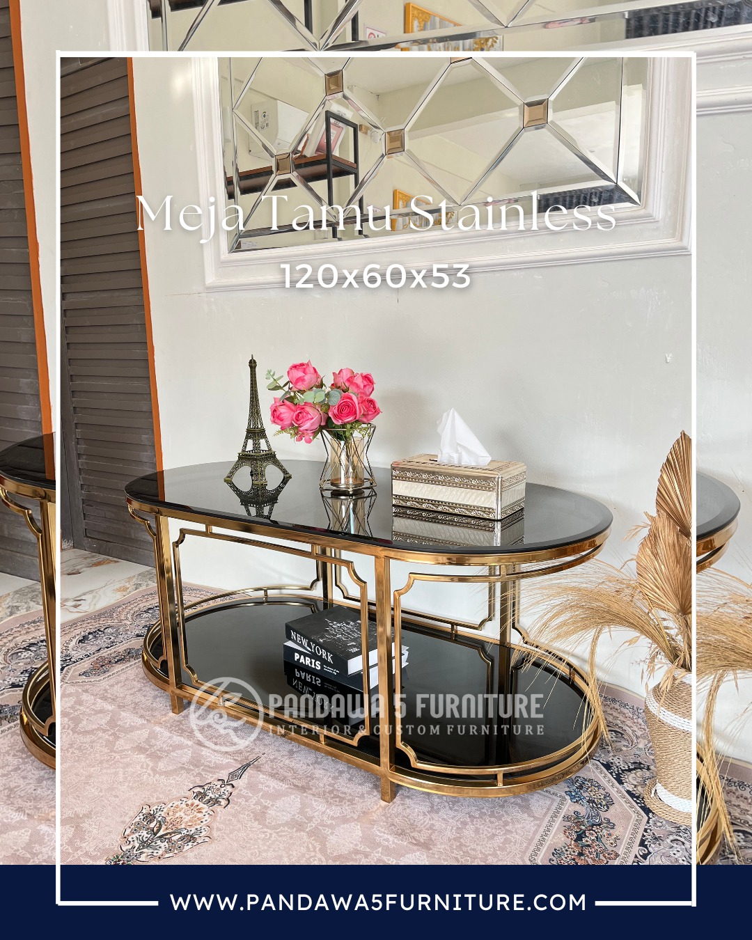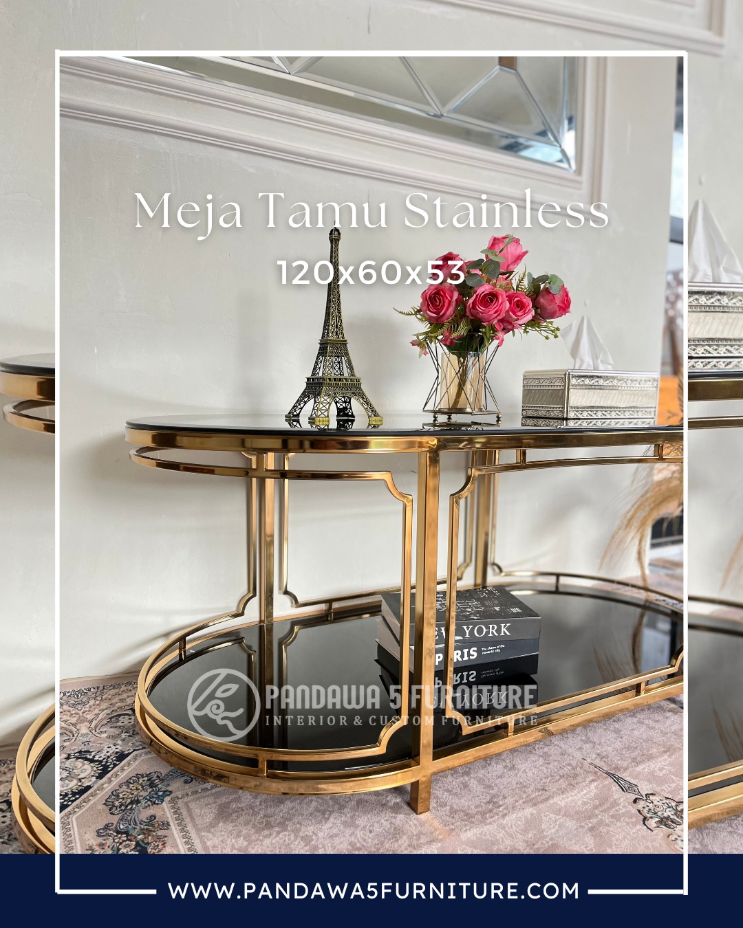 Meja Tamu Stainless Gold 120x60x53 – Desain Mewah & Modern untuk Ruang Tamu Elegan
